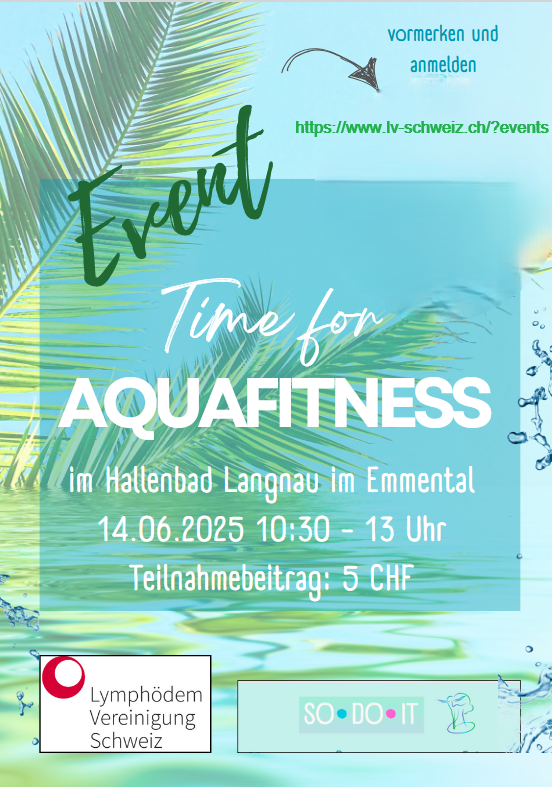 Die Lymphödem Vereinigung Schweiz und Sophia Dorka von SO DO IT laden alle Mitglieder und Betroffene mit Lymphödeme herzlich zu einem entspannenden Aquafitness-Kurs und anschliessendem gemeinsamen Baden ein.